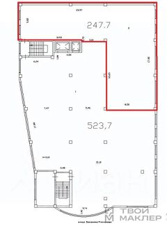 Площадь - 519,3кв.м., из них 1этаж - 270,4кв.м, остальное - второй этаж.