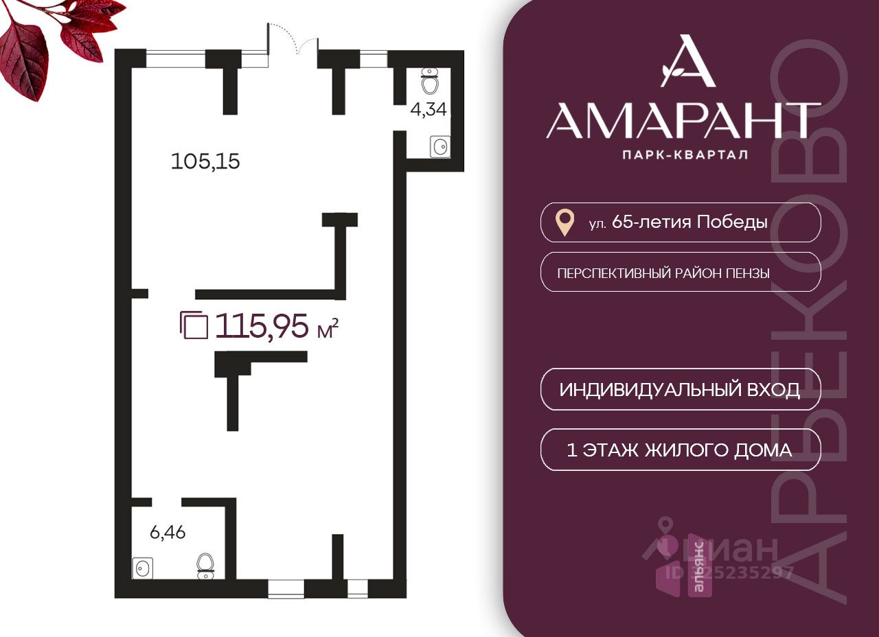 Помещение расположено в парк-квартале Амарант — в новом, перспективном районе дальнего Арбеково. Продажа напрямую от застройщика.