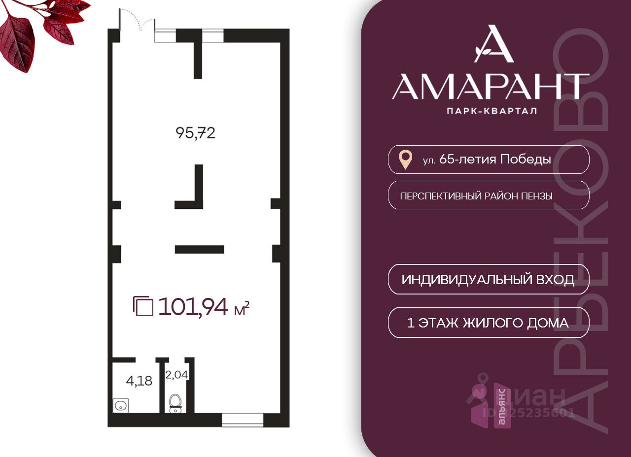 Помещение расположено в парк-квартале Амарант — в новом, перспективном районе дальнего Арбеково. Продажа напрямую от застройщика.
