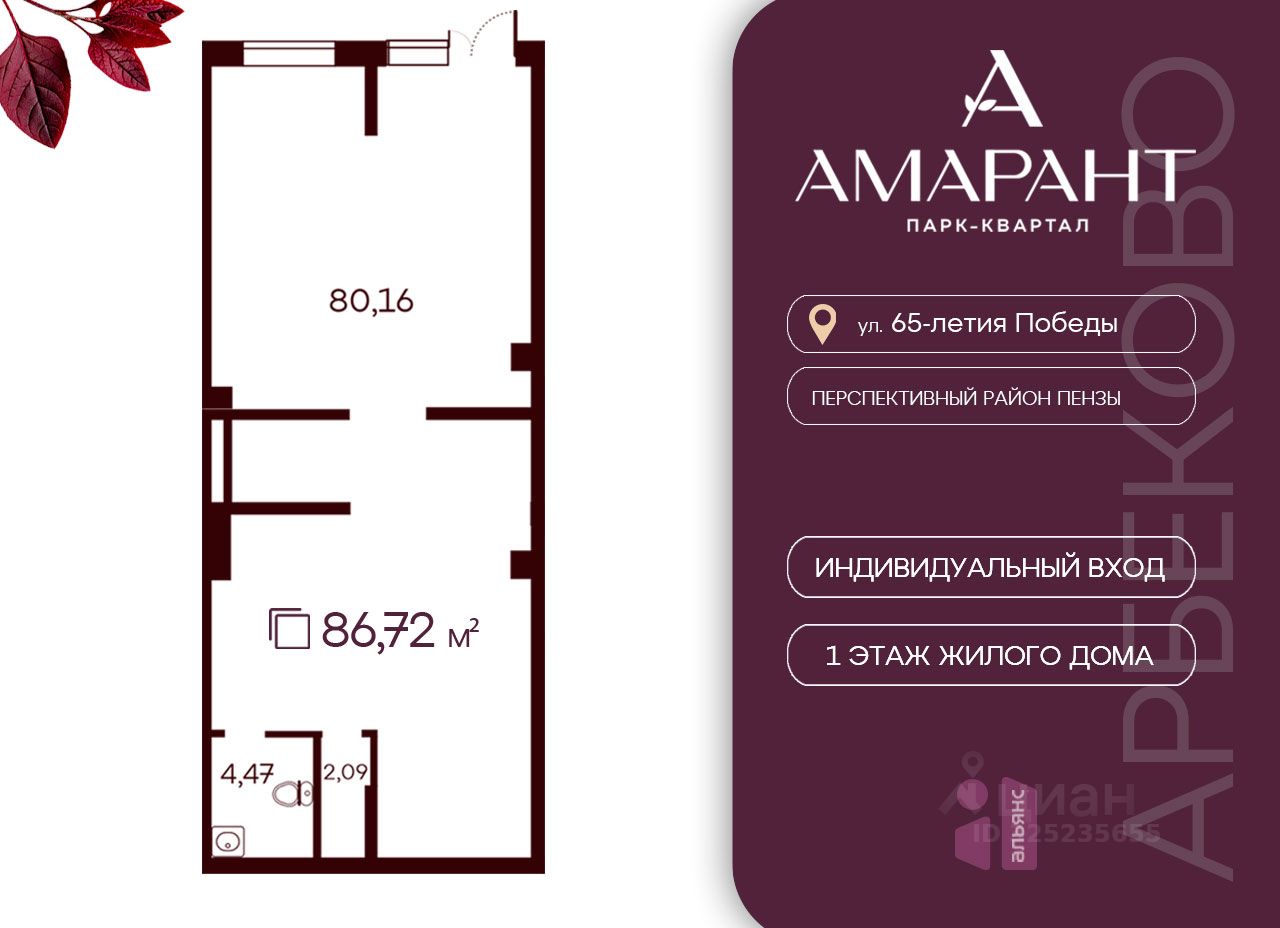 Помещение расположено в парк-квартале Амарант — в новом, перспективном районе дальнего Арбеково. Продажа напрямую от застройщика.