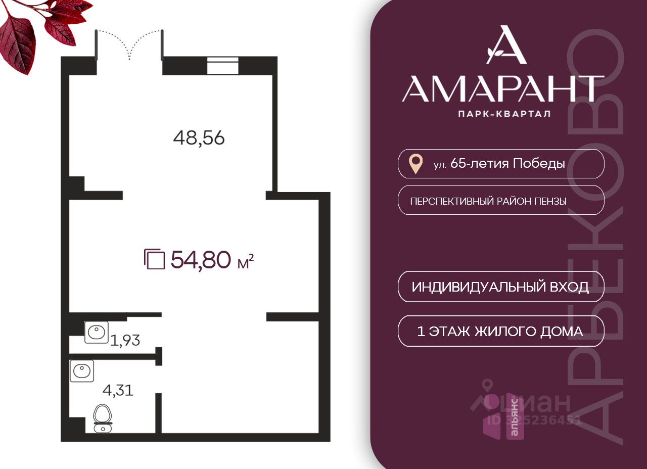 Помещение расположено в парк-квартале Амарант — в новом, перспективном районе дальнего Арбеково. Продажа напрямую от застройщика.