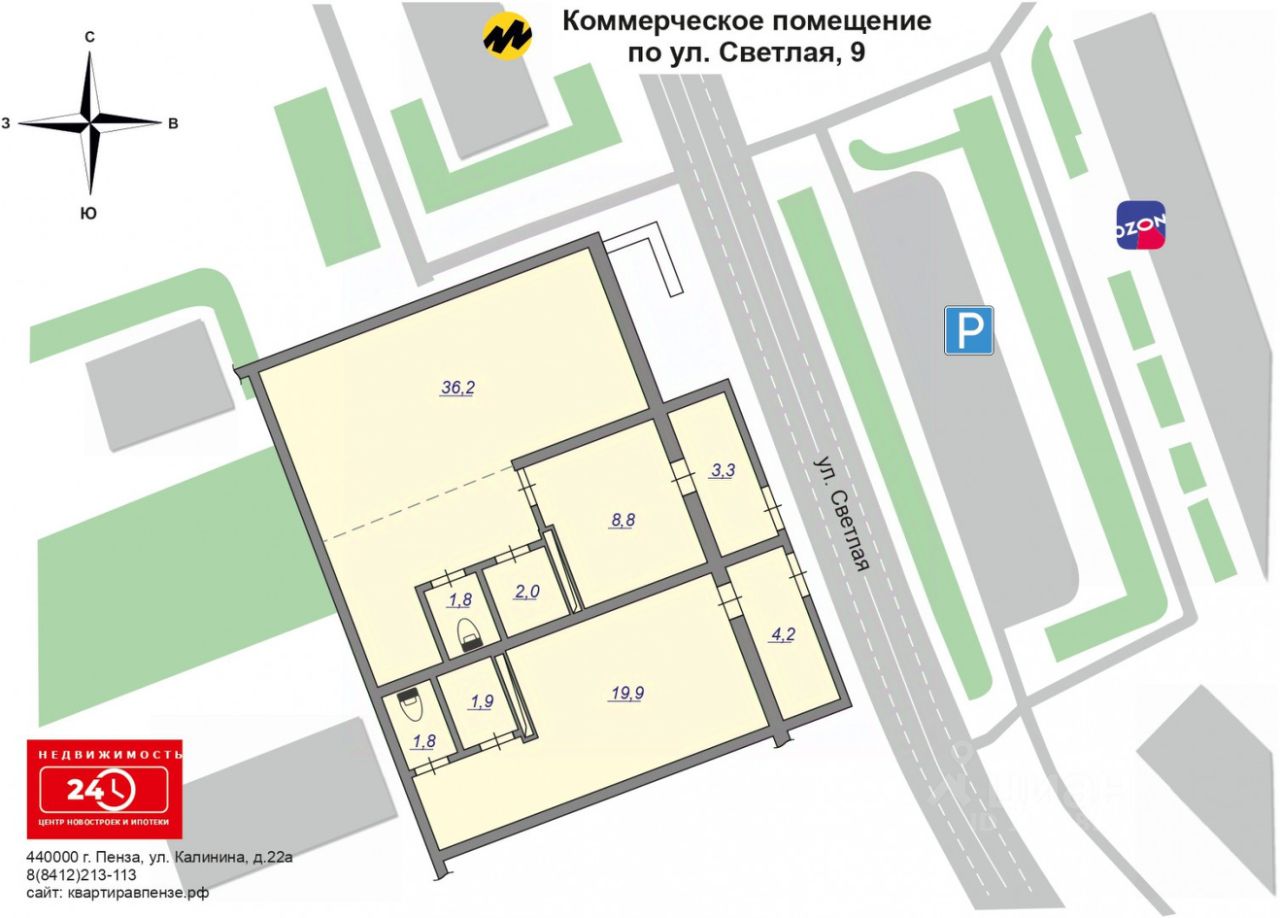 - Коммерческое помещение расположено на первой линии по адресу Светлая, д. 9