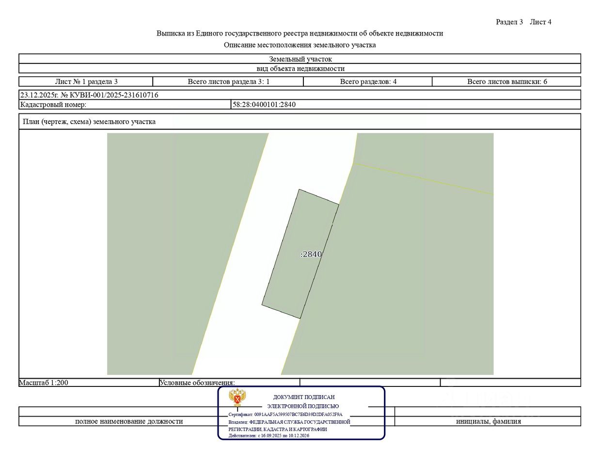 Земельный участок с кадастровым номером 58:28:0400101:2840, расположенный по адресу: Пензенская область, Шемышейский район, р.п. Шемышейка, ул. Свердлова, общей площадью 45,0 кв.м, вид разрешённого использования - хранение автотранспорта