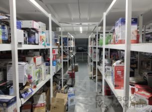 склад оборудован стеллажами (легко демонтировать и организовать кабинеты, помещения уже разделены)