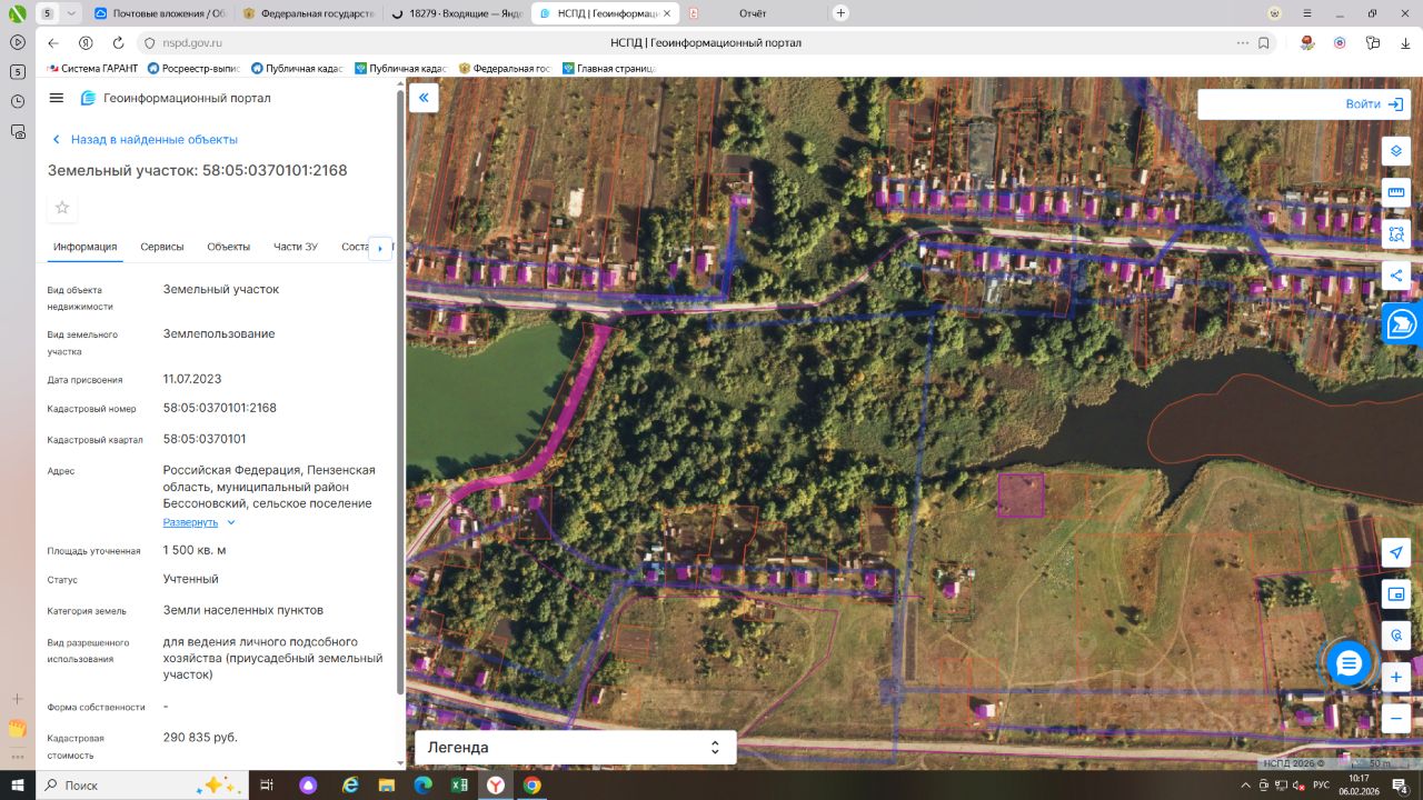Земельный участок площадью 1500 кв.м. по адресу: Пензенская область Бессоновский район с. ул. Центральная 88