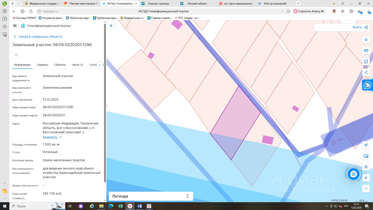 Земельный участок с кадастровым номером 58:05:0220201:1296