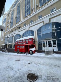 главный вход реализован в виде 2х этажного английского автобуса doubledecker известный практически каждому жителю городу (Легко демонтируемый, в случае необходимости)