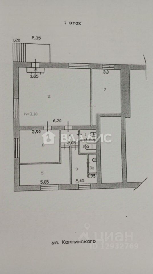 Высота потолков: 3,1 м.