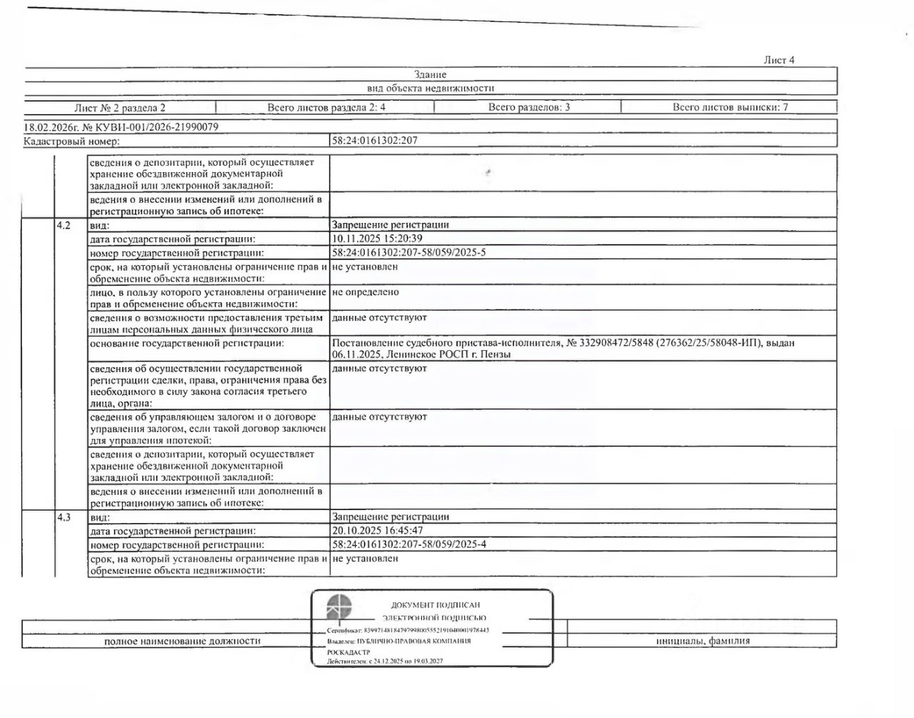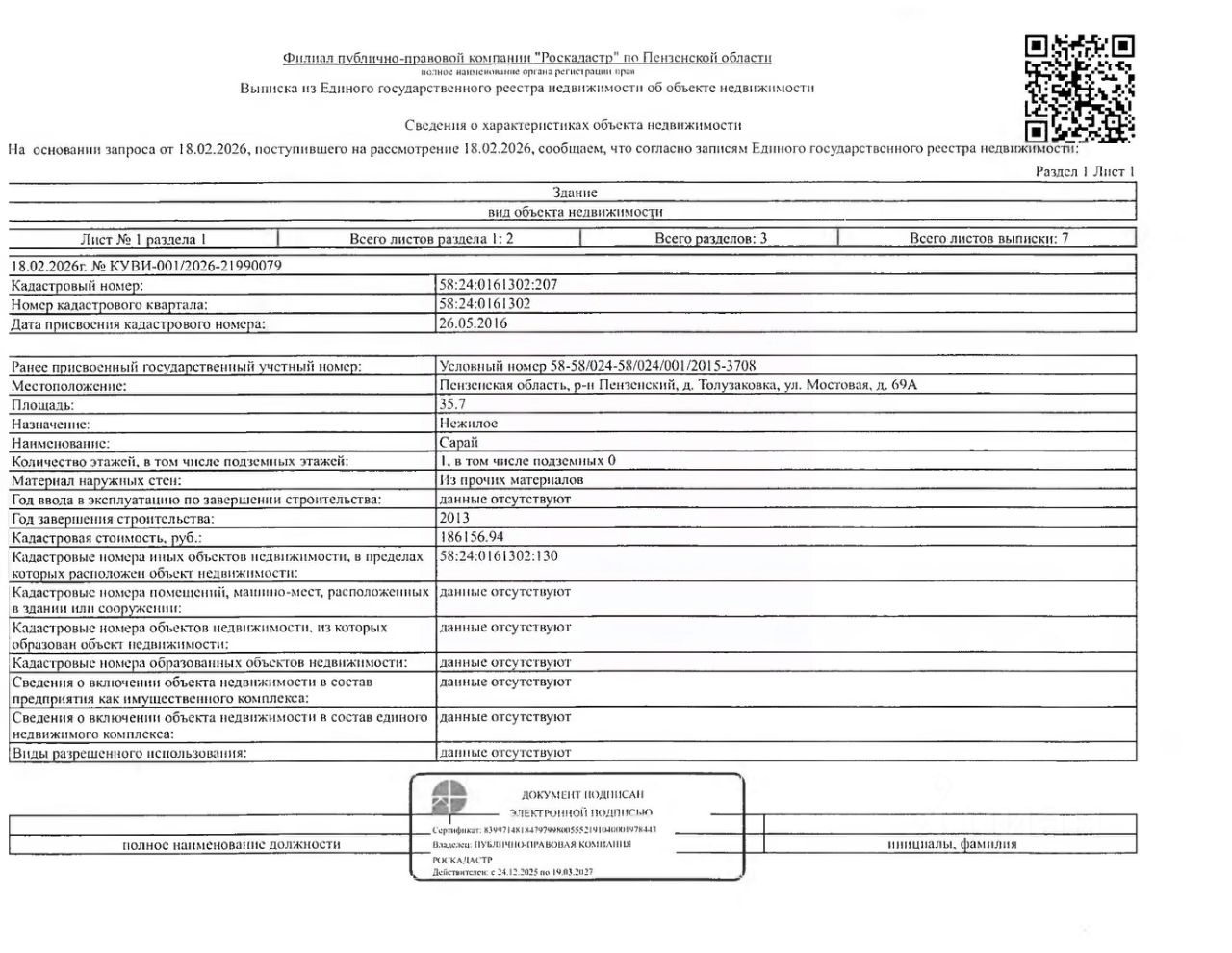 Нежилое здание (сарай) площадью 35,7 кв.м., кад. 58:24:0161302:207, и земельный участок площадью 1500+/-27 кв.м., кад. 58:24:0161302:130, категория земель: земли населённых пунктов, виды разрешённого использования: для ведения личного подсобного хозяйства. Объекты недвижимости принадлежат должнику Калининой Н.А. Сведениями о размере задолженности по коммунальным услугам, а также о фактическом состоянии объекта недвижимости, организатор торгов не располагает. Ключи, техническая документация и фотографии объекта отсутствуют у организатора торгов.