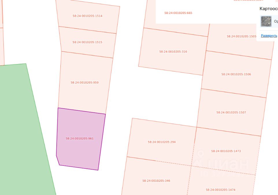 Земельный участок с кадастровым номером 58:24:0010205:961 площадь 1500 по адресу Российская Федерация, Пензенская область, Пензенский район, с. Алферьевка