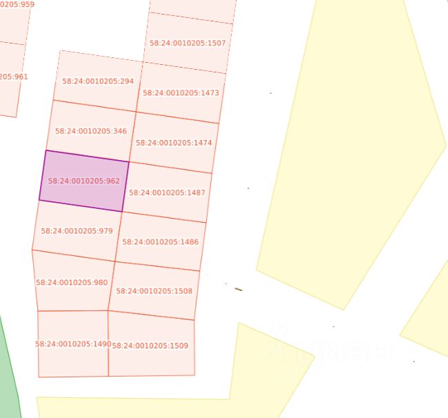 Земельный участок с кадастровым номером 58:24:0010205:962 площадь 1500 по адресу Российская Федерация, Пензенская область, Пензенский район, с. Алферьевка