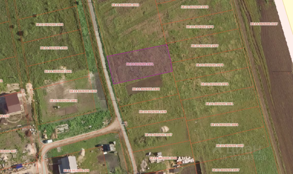 Земельный участок с кадастровым номером 58:24:0020205:2971 площадь 1196 по адресу Пензенская область, Пензенский р-н, с Богословка