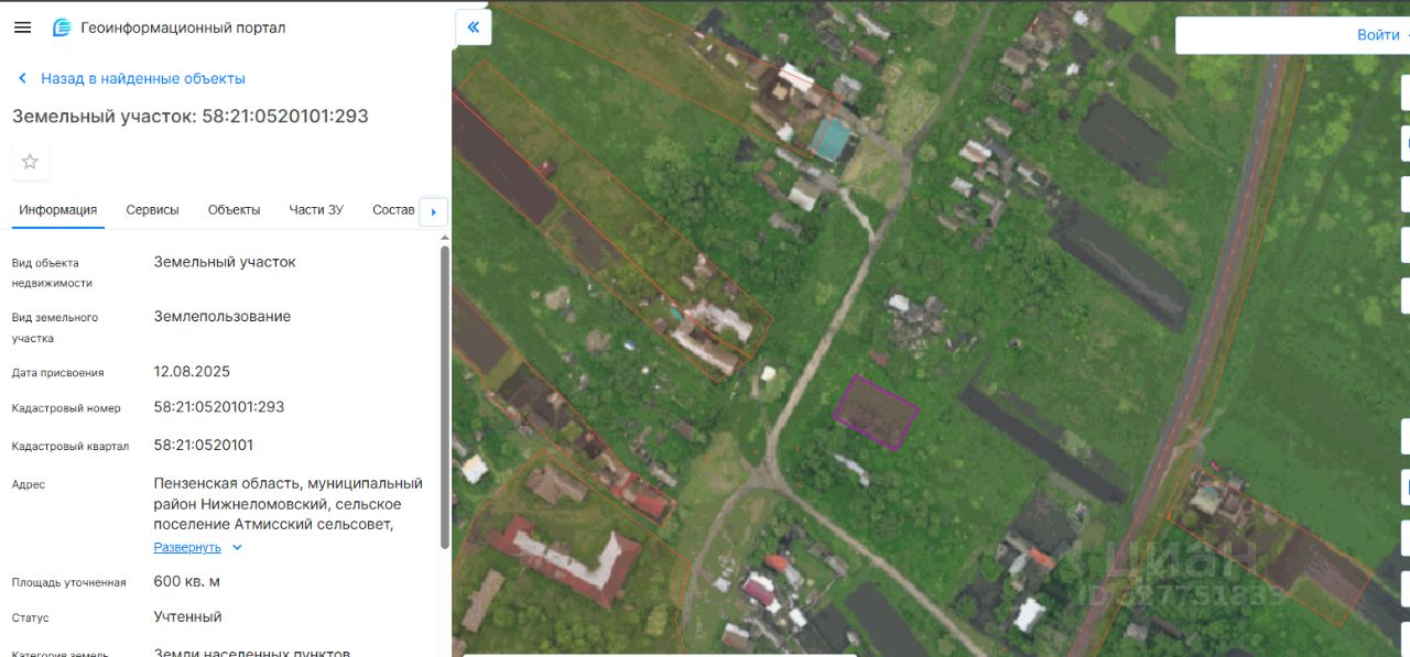 Земельный участок из земель населенных пунктов с кадастровым номером 58:21:0520101:293, разрешенное использование для индивидуального жилищного строительства (код 2.1), площадью 600 кв.м, адрес (описание местоположения): Пензенская область, Нижнеломовский район, Атмисский сельсовет, с. Большой Мичкас, ул. Верхняя, земельный участок 29.