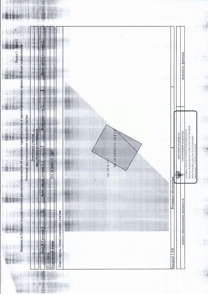 земельный участок с кадастровым номером 58:28:0400101:2847 расположенный по адресу:Пензенская область, Шемышейский район, р.п. Шемышейка, ул. Строительная, площадью 58 кв.м., разрешенное использование земельного участка - для ведения личного подсобного хозяйства(приусадебный земельный участок)
