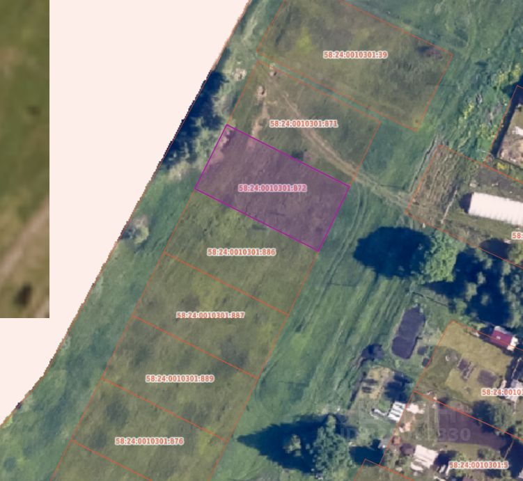 Земельный участок с кадастровым номером 58:24:0010301:872 площадь 1000 по адресу Российская Федерация, Пензенская область, Пензенский р-н, с Алферьевка