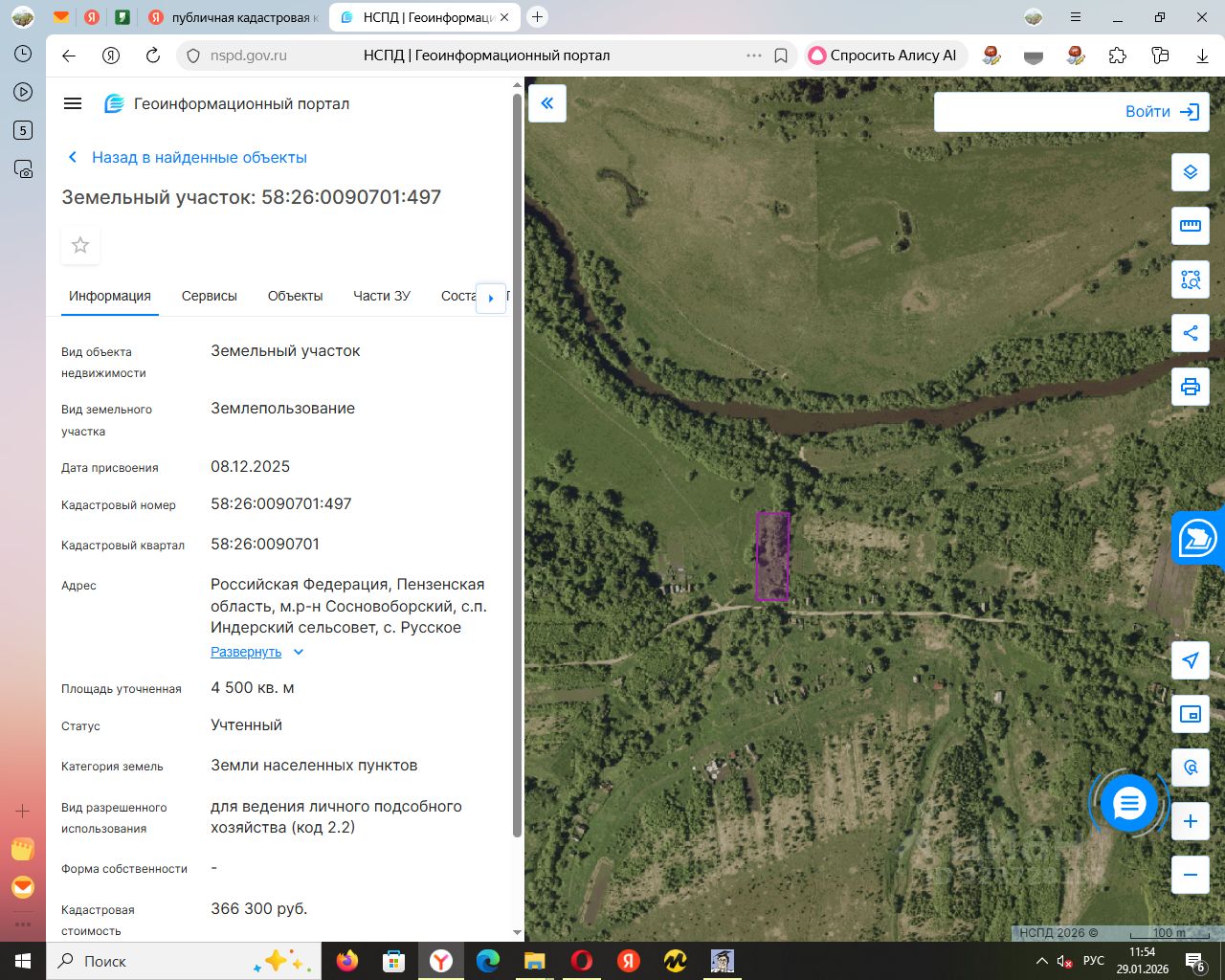 Земельный участок с кадастровым номером 58:26:0090701:497 площадь 4500 по адресу Российская Федерация, Пензенская область, м.р-н Сосновоборский, с.п. Индерский сельсовет, с. Русское Труево, ул. Труевская