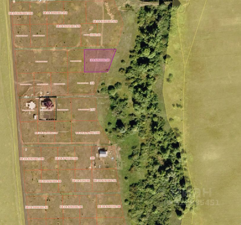 Земельный участок с кадастровым номером 58:24:0292302:69 площадь 1967 по адресу обл. Пензенская, р-н Пензенский, с. Малая Валяевка, ул. Центральная, дом 155