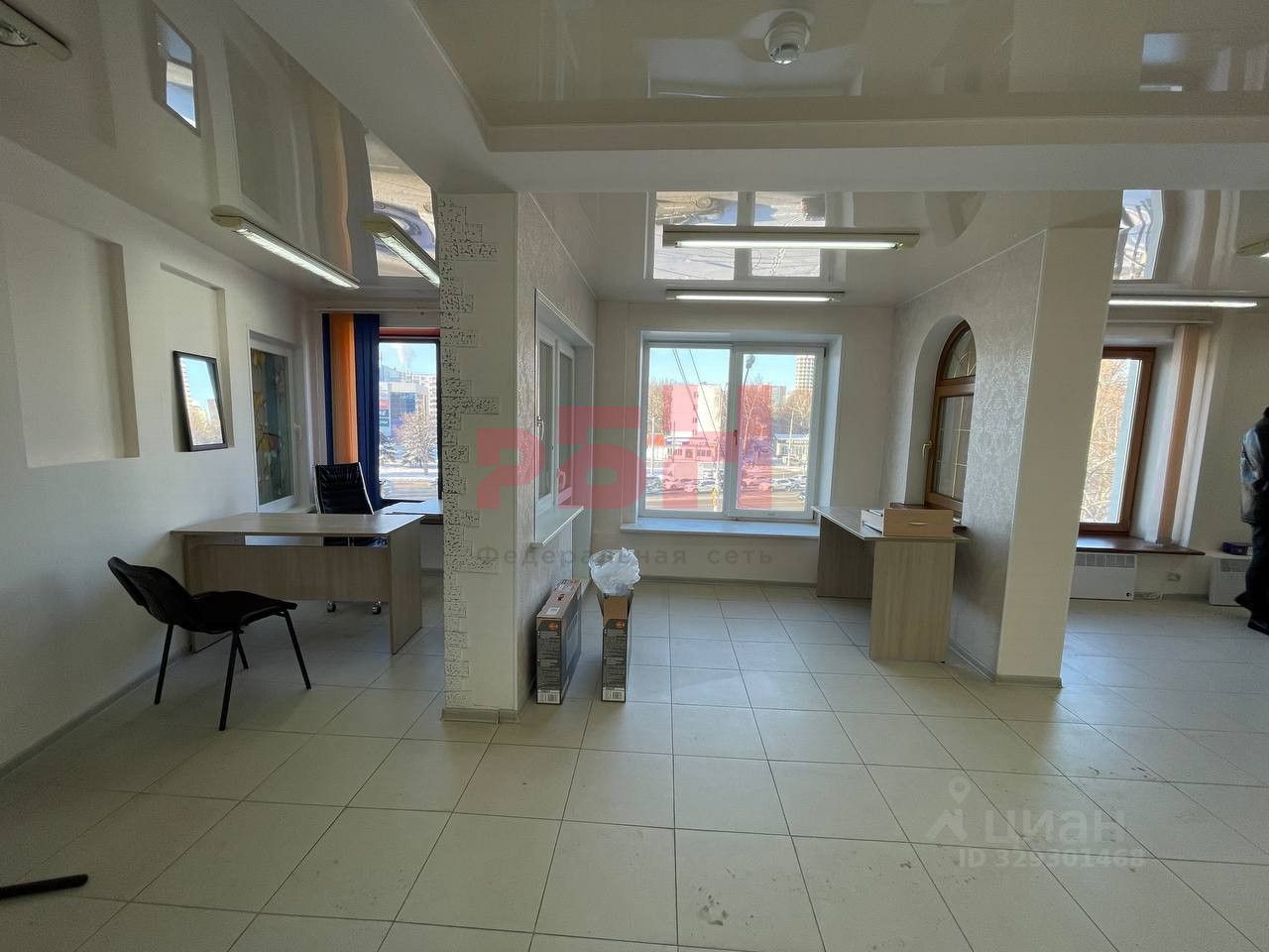 Потрясающий вид: Наслаждайтесь захватывающими панорамными видами на город прямо из вашего офиса благодаря четырем большим окнам.