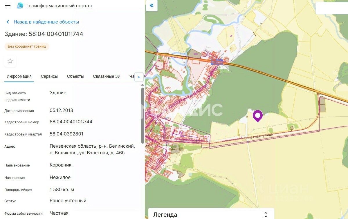 Адрес нежилого здания: Пензенская область, Белинский район, с. Волчково, ул. Взлетная 46а;