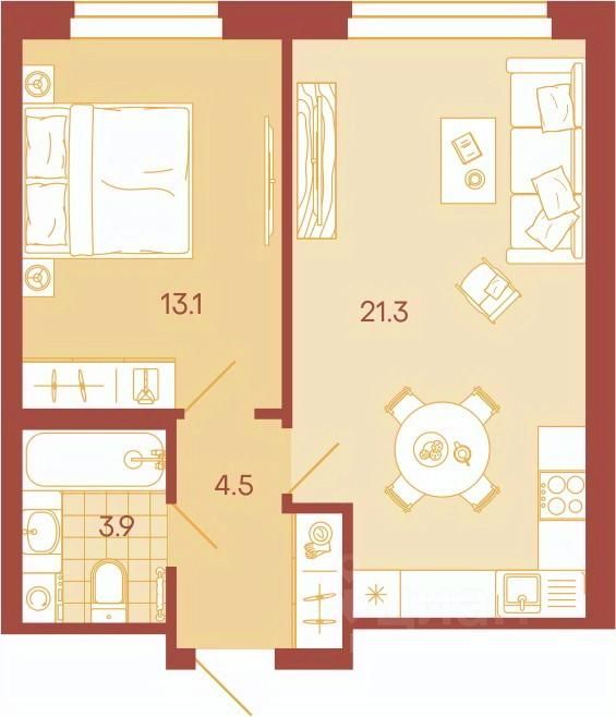 Общая площадь42,8 м²