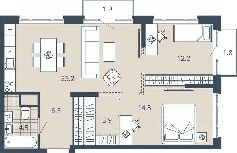 - Развитая инфраструктура района: рядом более 10 школ и детских садиков, крупные торговые центры, фитнес-клубы.