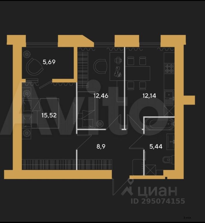 Общая площaдь 60.2 кв.м.