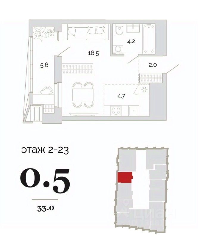 Общая площадь33 м²