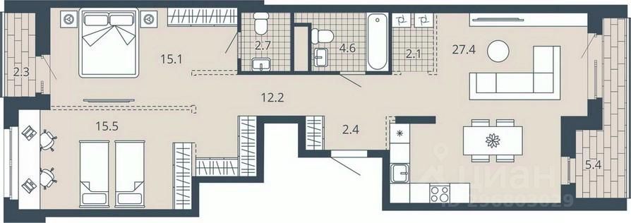 Площадь кухни27,4 м²