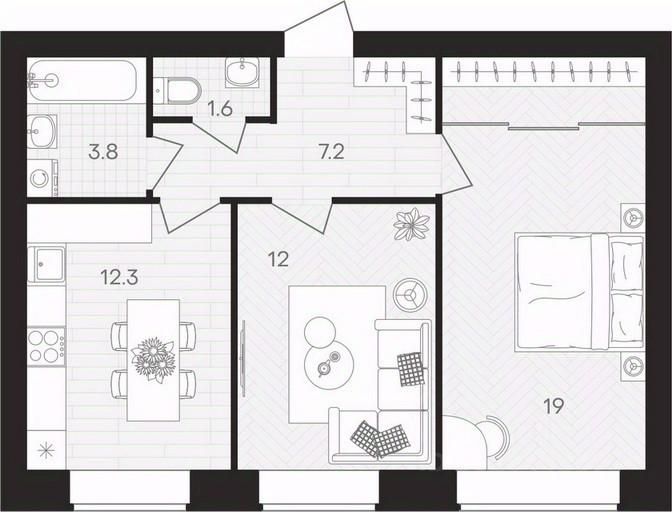 Площадь кухни12,3 м²