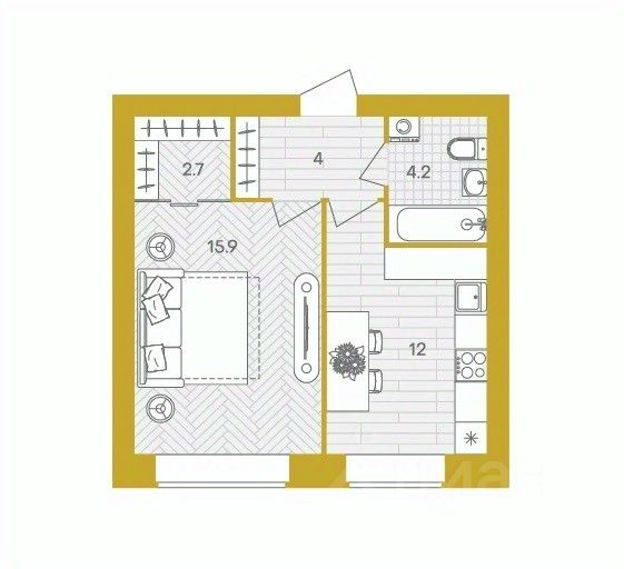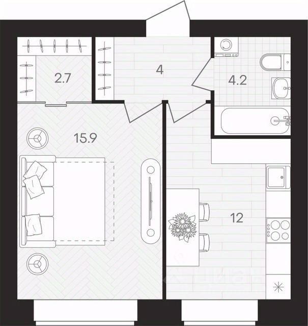Жилая площадь15,9 м²