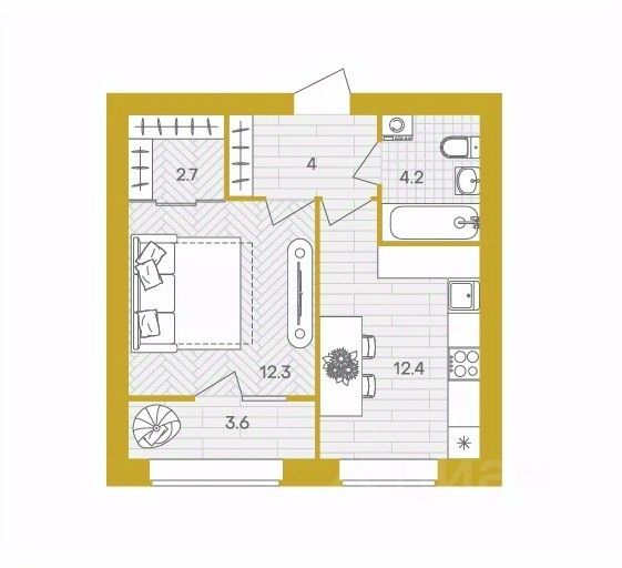 Жилая площадь12,3 м²