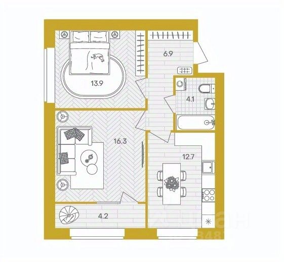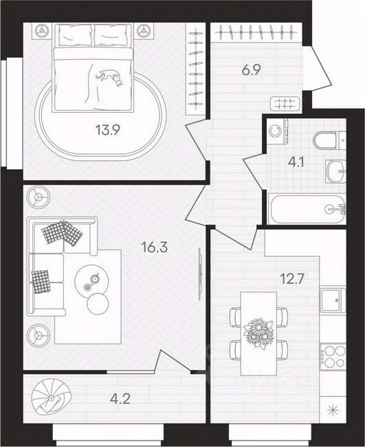 Площадь кухни12,7 м²