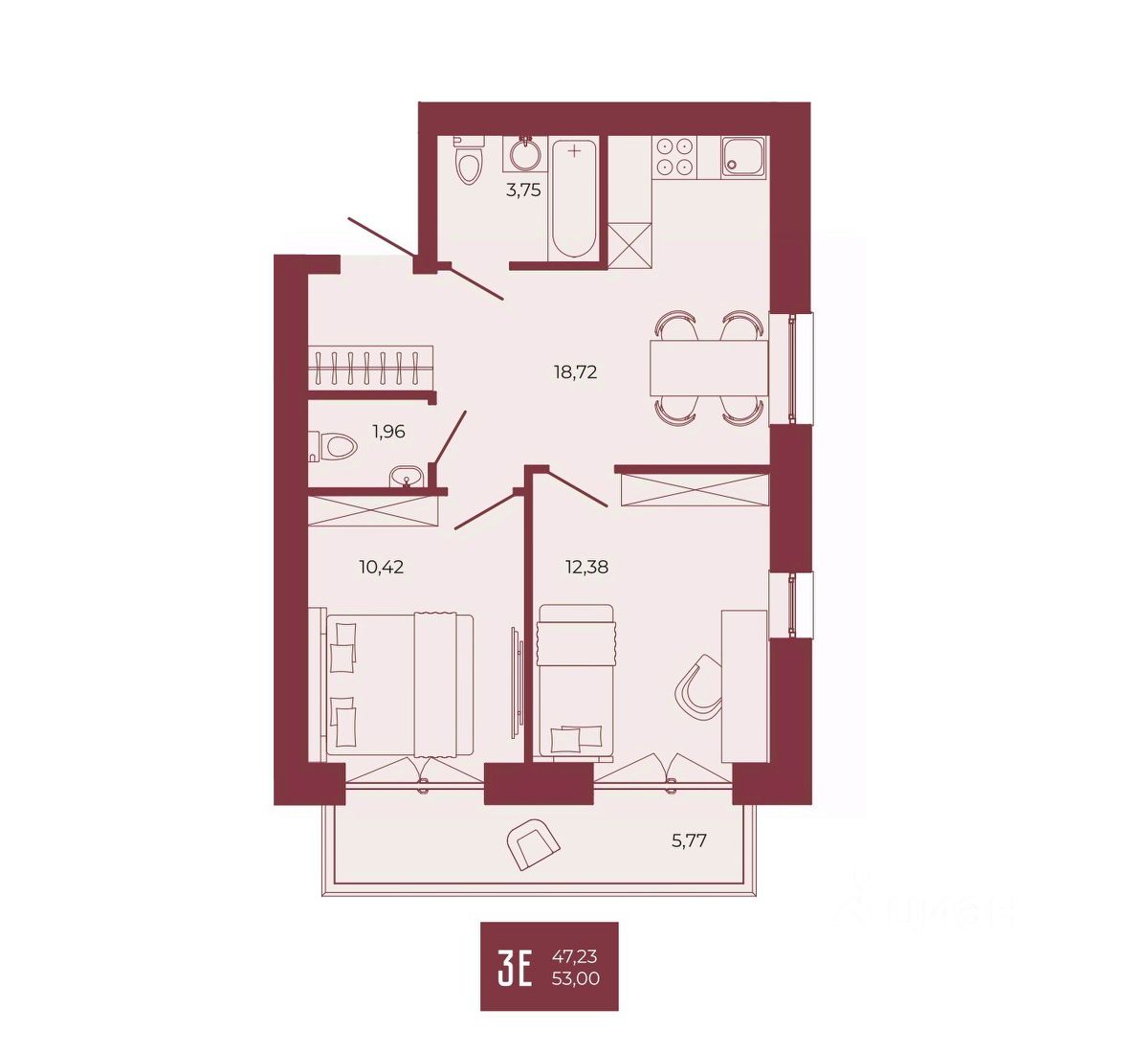 Общая площадь53 м²