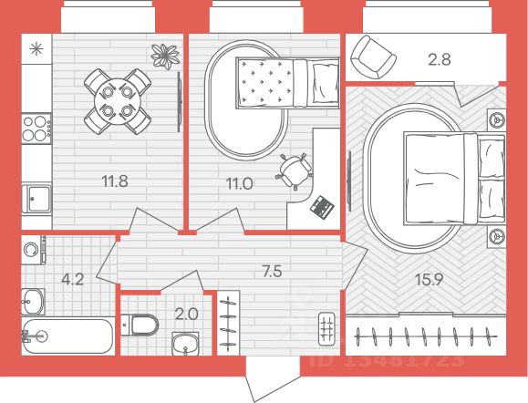 Площадь кухни11,8 м²