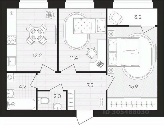 Общая площадь55,2 м²