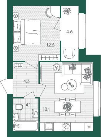 Жилая площадь12,6 м²