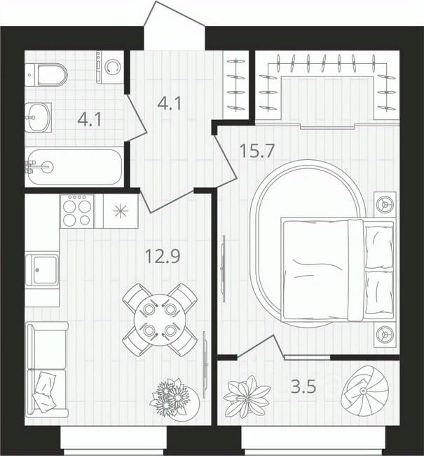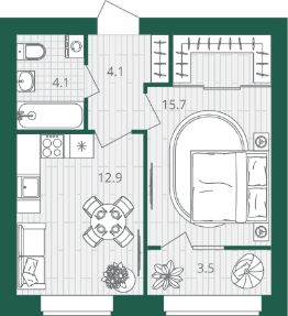 Жилая площадь15,7 м²
