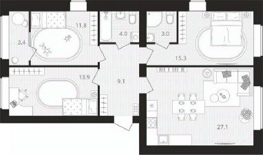 Площадь кухни27,1 м²