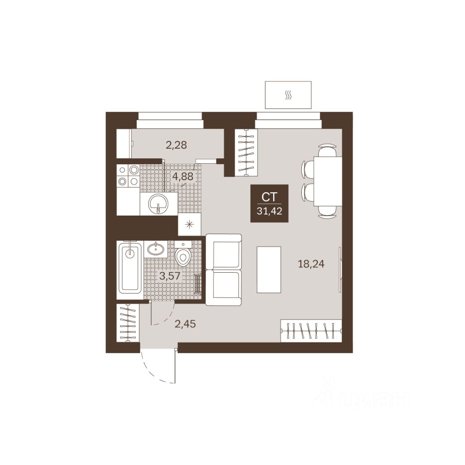 Общая площадь31,42 м²
