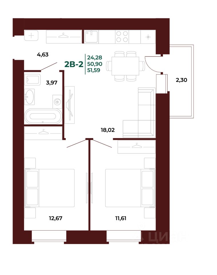 Жилая площадь24,3 м²