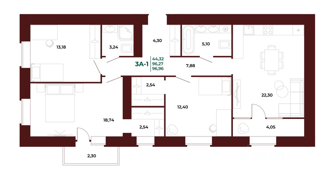 Общая площадь97,67 м²