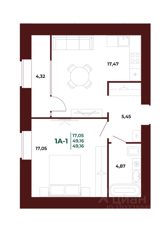 Общая площадь49,37 м²