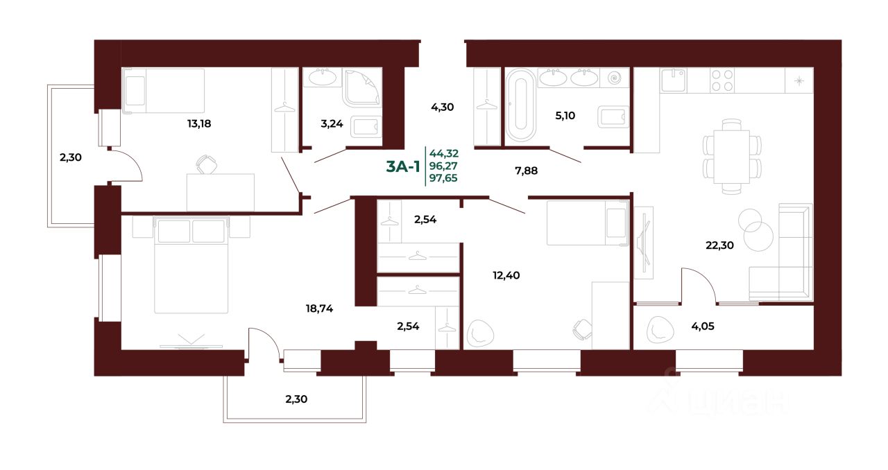 44,3 м²