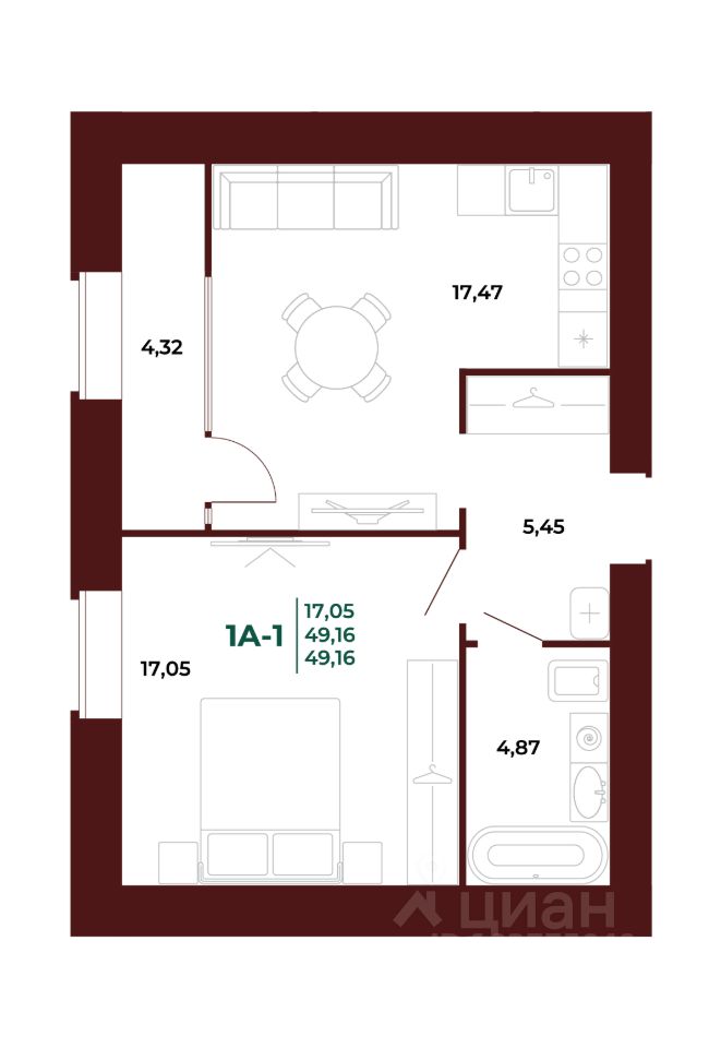 Общая площадь50,5 м²