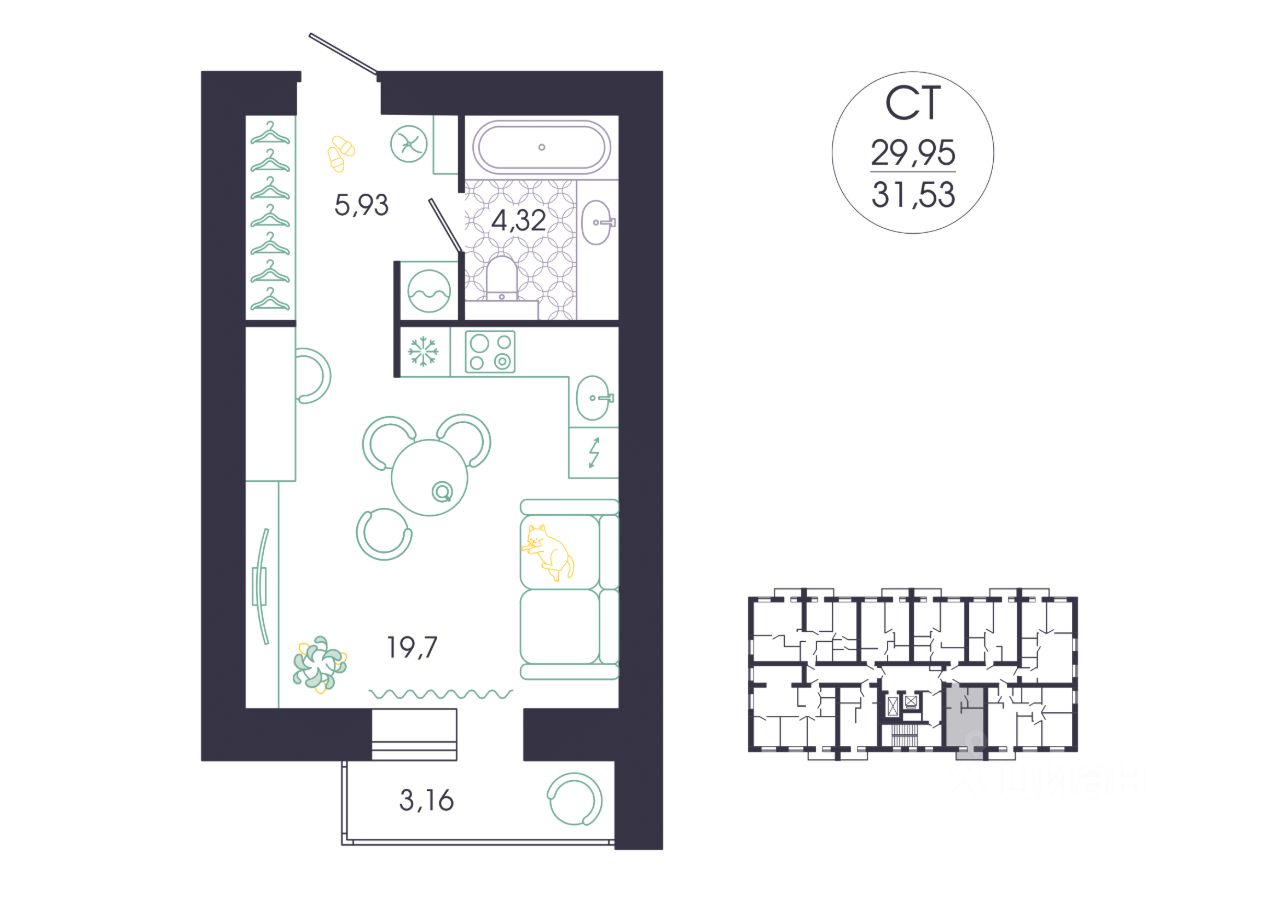 Общая площадь31,53 м²