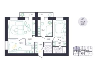 Продается 3-комн. квартира, 83,21 м²