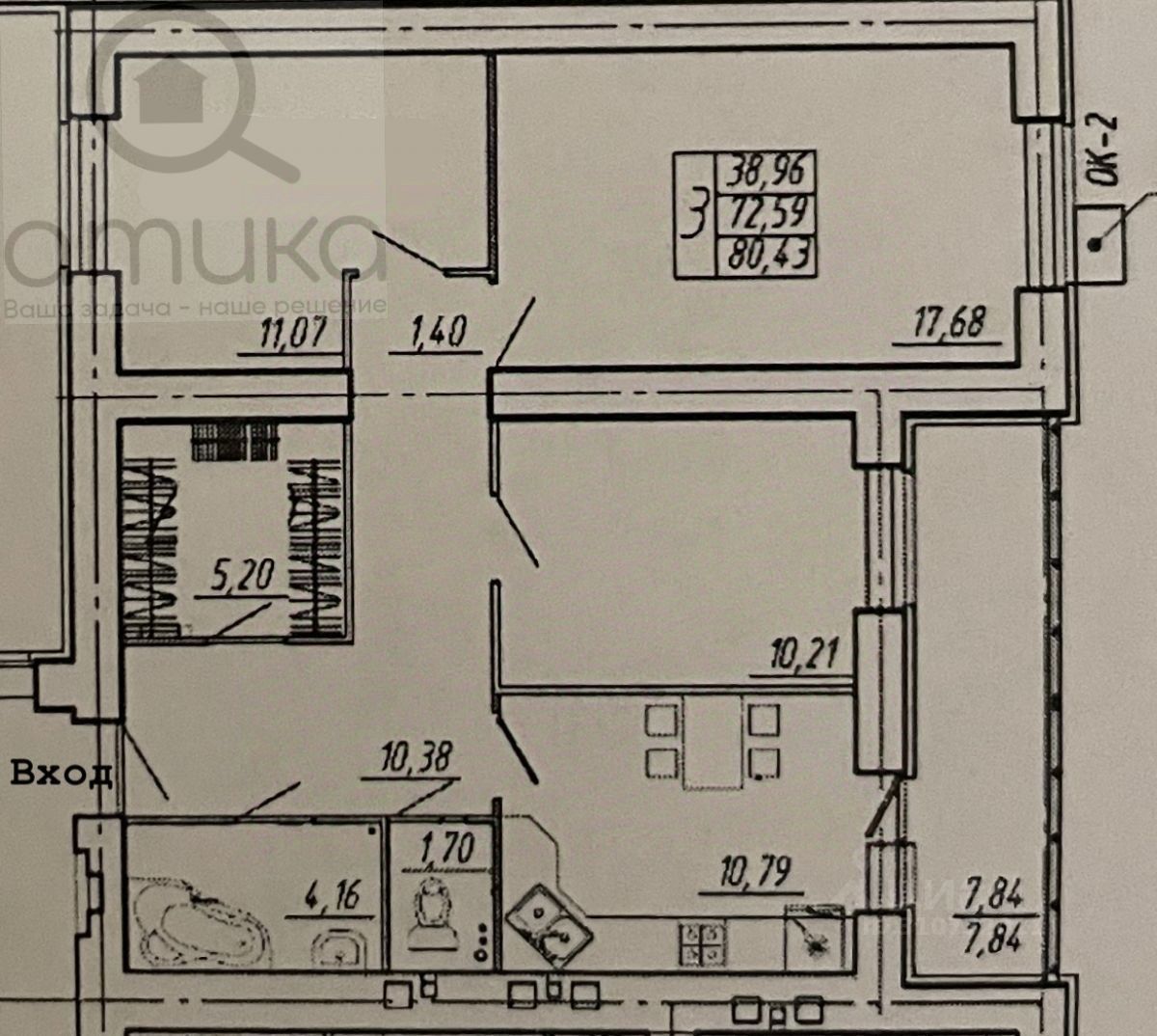 Эта просторная квартира общей площадью 80,4 м² включает в себя 39 м² жилой площади и кухню размером 10,8 м². Уникальная планировка квартиры предлагает комфорт и удобство: большая гардеробная поможет организовать пространство, а лоджия, выходящая на кухню и одну из комнаты, добавит уюта и света.