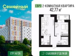 Общая площадь42,77 м²
