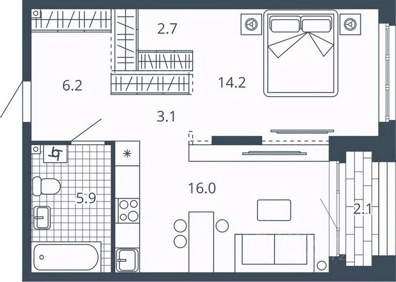 Жилая площадь16,5 м²