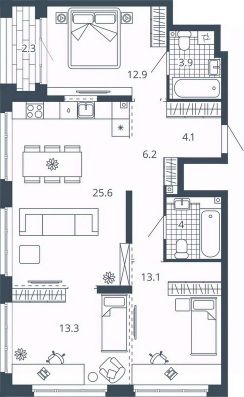 Площадь кухни25,6 м²